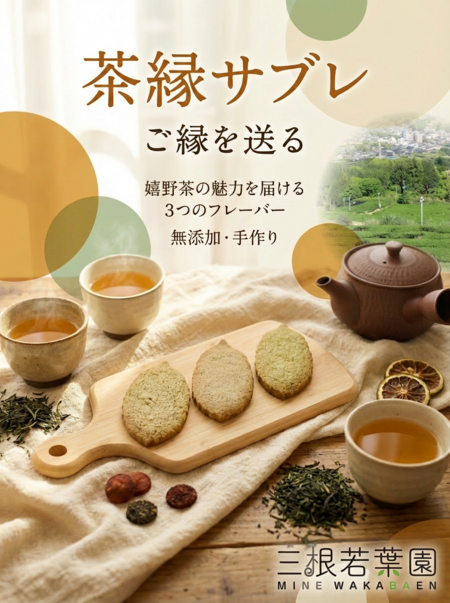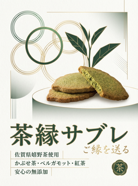 ご縁を送る茶縁サブレというテーマでポスターを作成してください。
