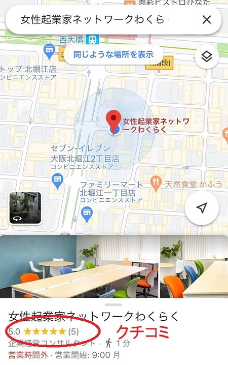 今は、Googleで検索するとクチコミ、星の数が表示されます。