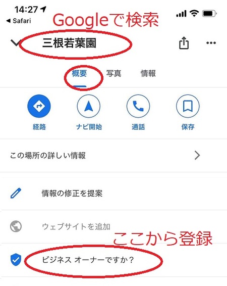 2.概要をクリックして「ビジネスオーナーですか?」をクリック