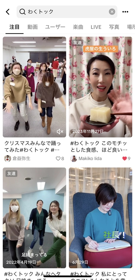 TikTokでは「わくトック」という共通のハッシュタグを用いて団体で発信しています。