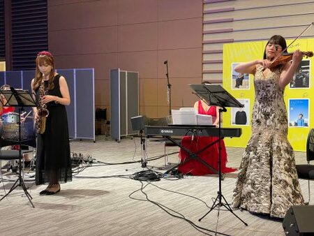 会場にはバイオリン、サックス、ピアノ、ドラムの生演奏もあり華やぎました。