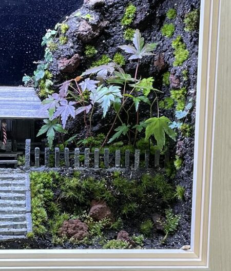 苔カフェ金木犀のオーナーさんは苔を使って絵画のような世界を表現したいとオリジナルのケースや額を開発されました。