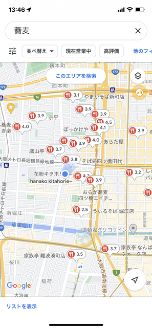 GoogleMAPで検索するとクチコミ、星の数が表示されます。