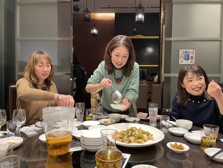 仕事の話題だけでなく、地元のことやファッションのこと、パートナーのことなど他愛のない話題で距離を縮め合えるのは、女性のコミュニティ特有ですね。