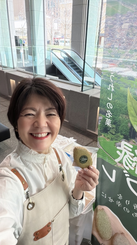 オフィスビルのエントランスにテーブルを並べて、茶縁サブレを販売。