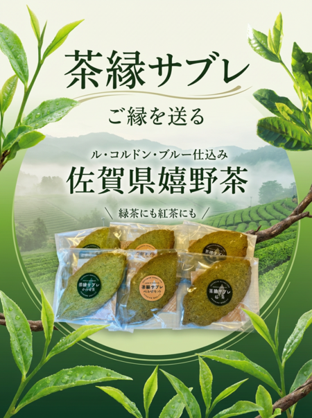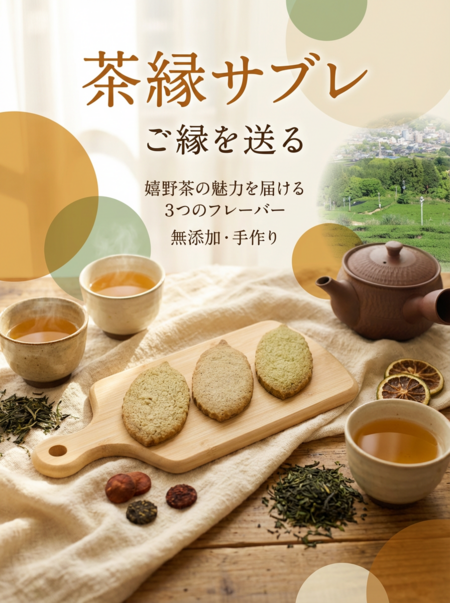 ご縁を送る茶縁サブレというテーマでポスターを作成してください。
