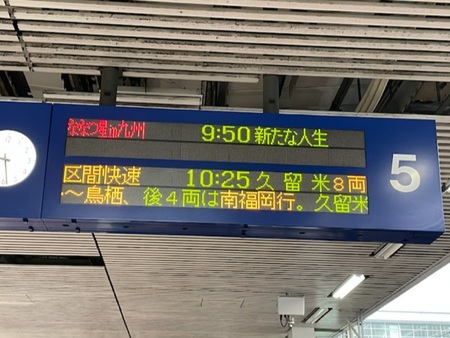 博多駅で在来線から新幹線に乗り換える際にクルーズトレイン「ななつ星 in 九州」が停車しているのを発見。