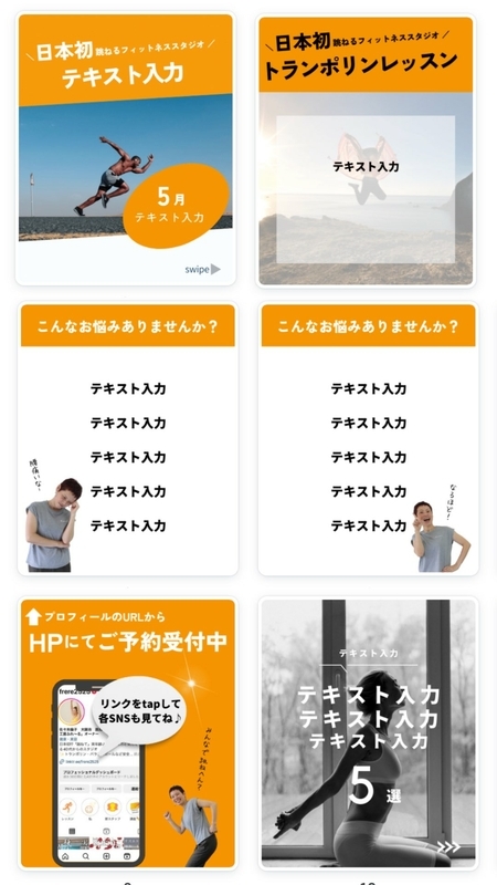Instagramテンプレートは会員さんのサービスの性質やお好みを聞いて、集客の導線を作りこのようなデザイン画像を作成します。