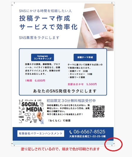 ちょっとしたコツですが、知らないとチラシの端に白い線が入ったりして素人臭くなります。