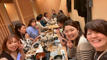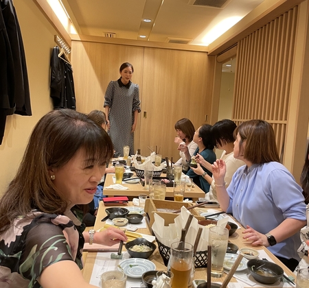 年2回くらいのペースで夜の懇親会を開催していますが、美味しい食事と飲み物があれば、グーンと参加者同士の距離が縮まります。