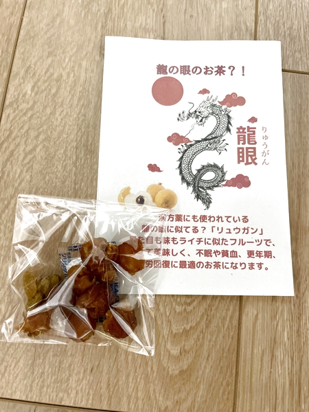 龍眼やナツメを食べることができて、ドライフルーツの甘さがとっても美味しい。