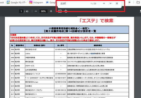 「エステ」「ヨガ」「不動産」など、ご自身の業種のキーワードを入れて検索すると同業者の採択事例を見ることができます。