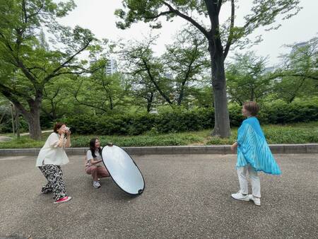 5名のみなさんに参加していただき、並木道やベンチ、バラがきれいなスポットなど様々な場所で撮影しました。